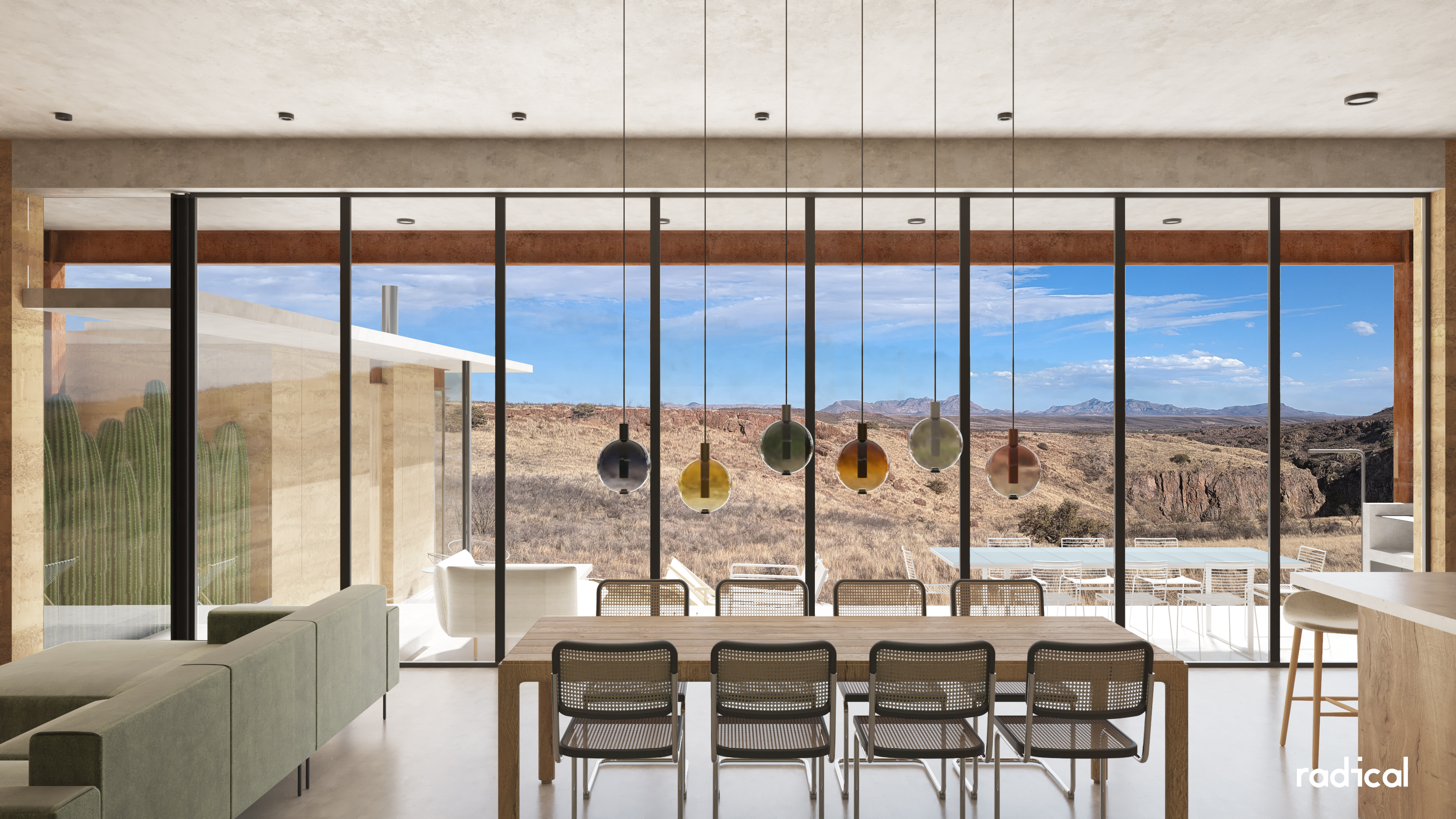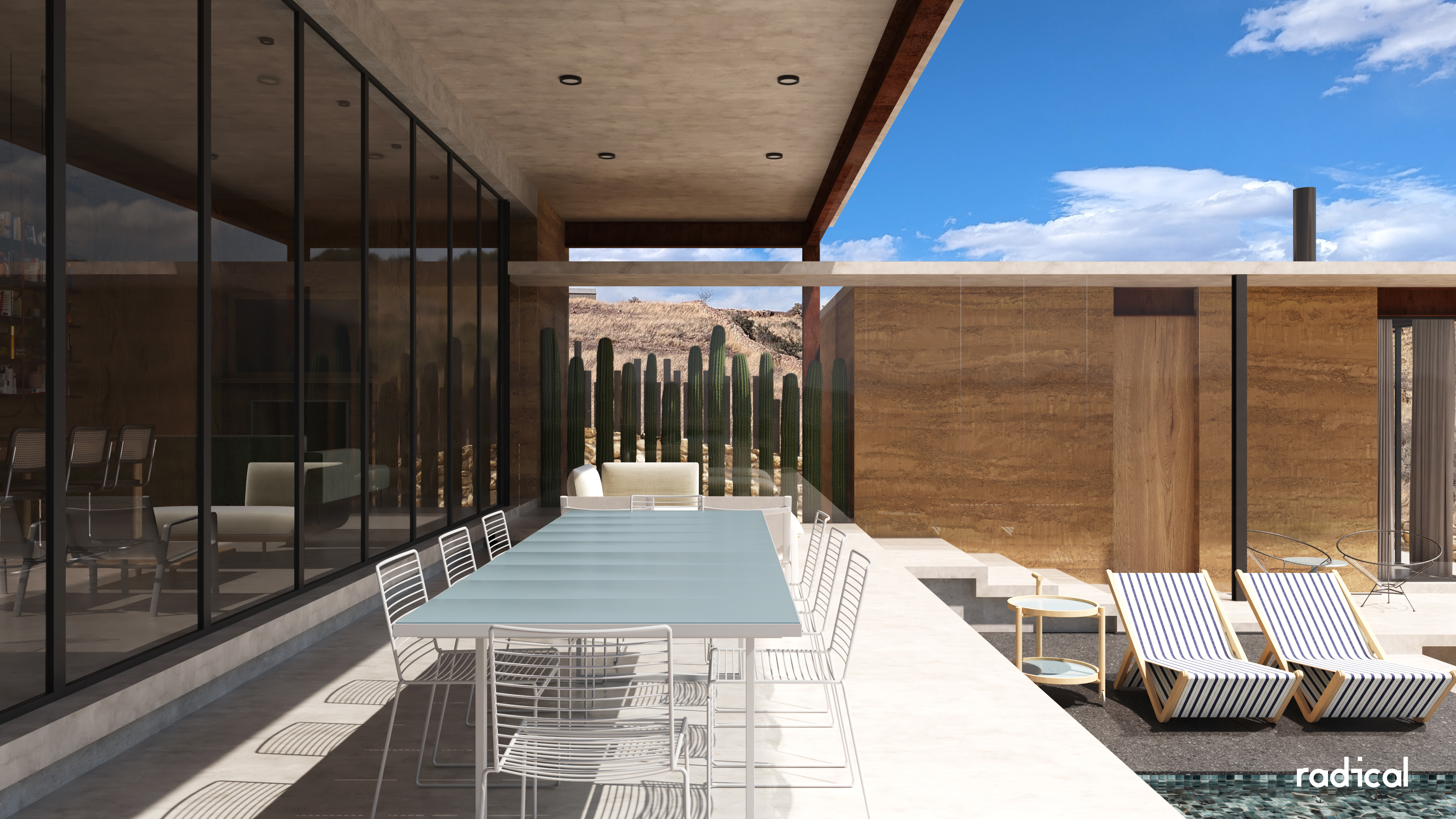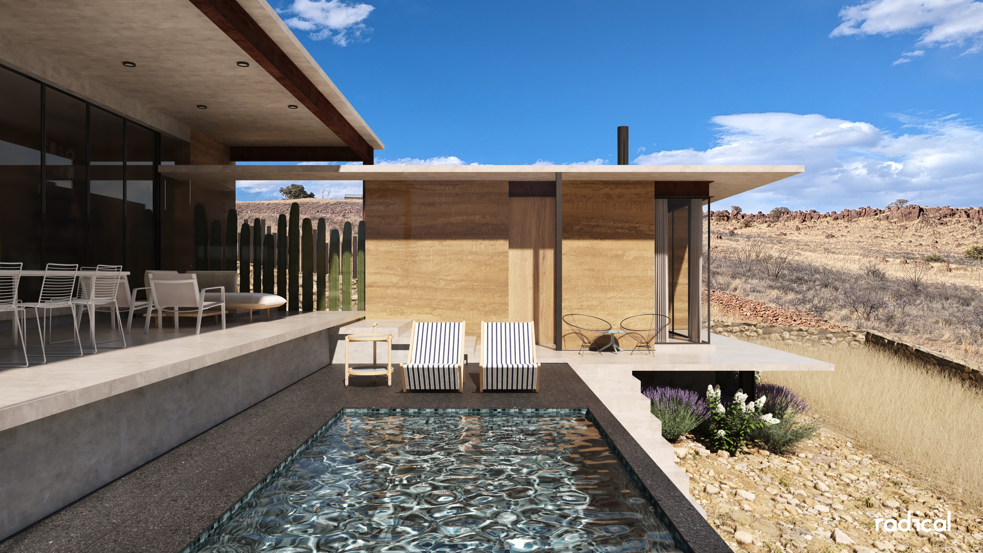 Casa Dertha propone ser un espacio de relajación y contemplación, con diferentes recorridos y vistas enmarcadas, que nos hacen desconectarnos de la ciudad y reconectar con el desierto tan emblemático de Chihuahua.