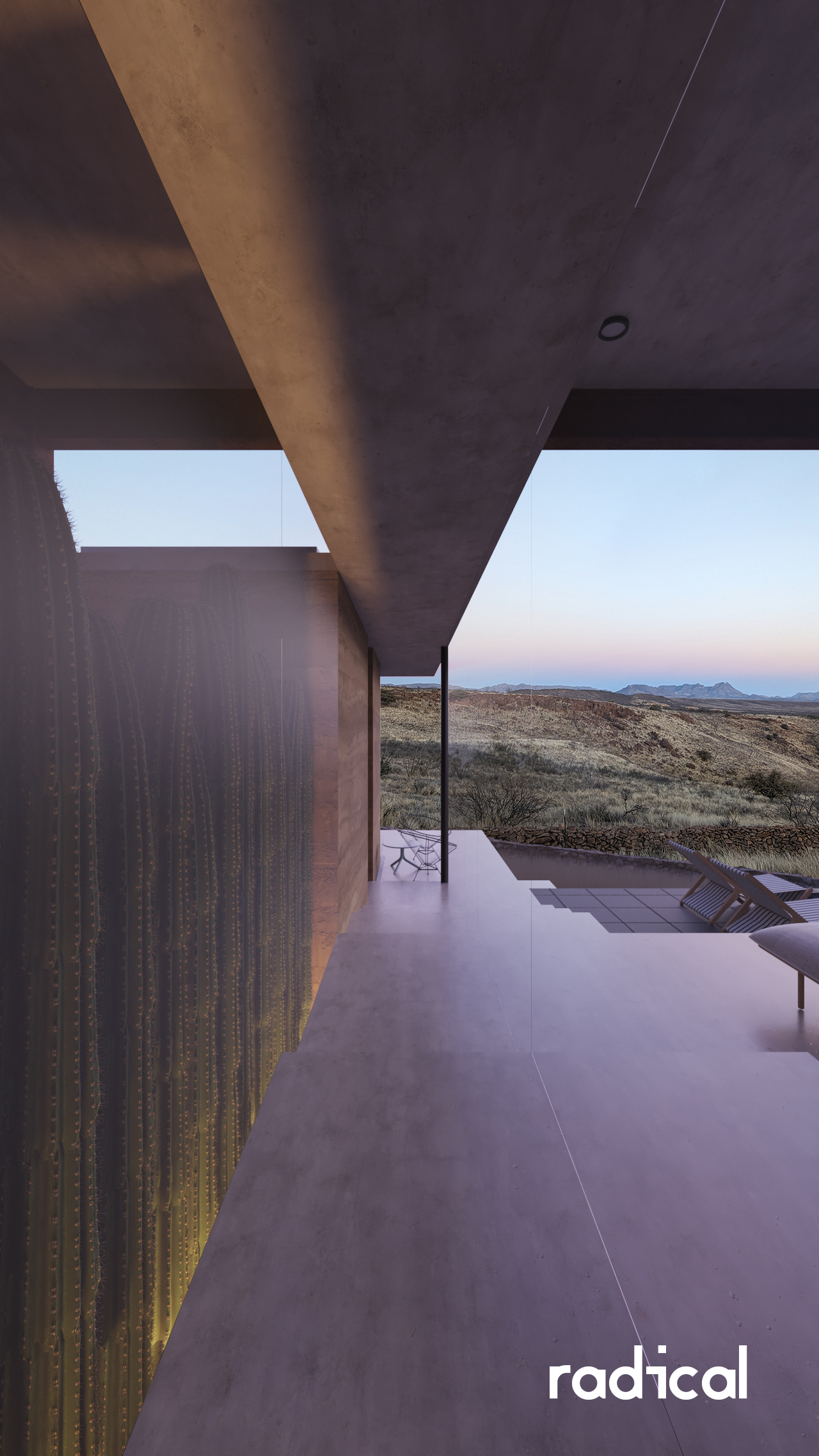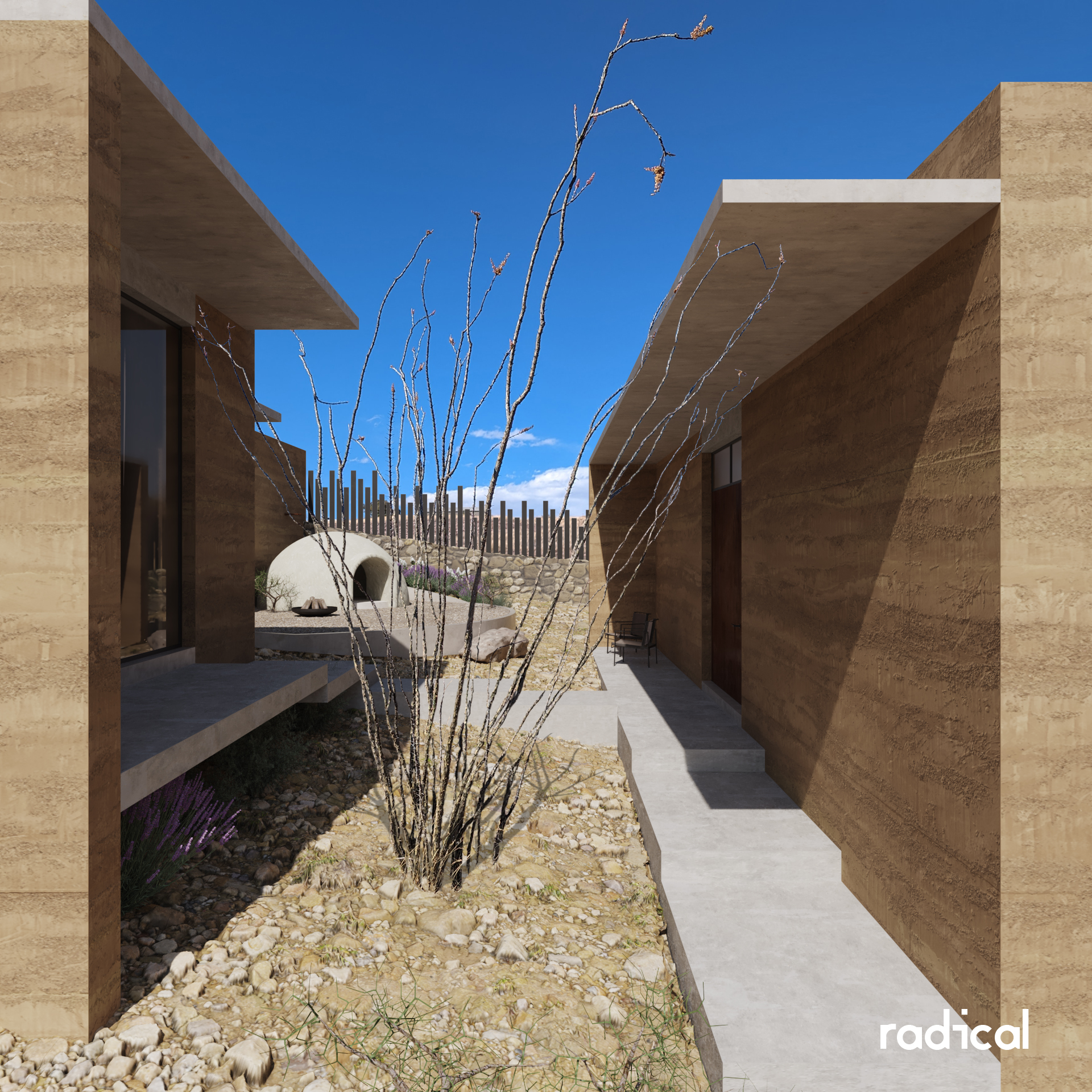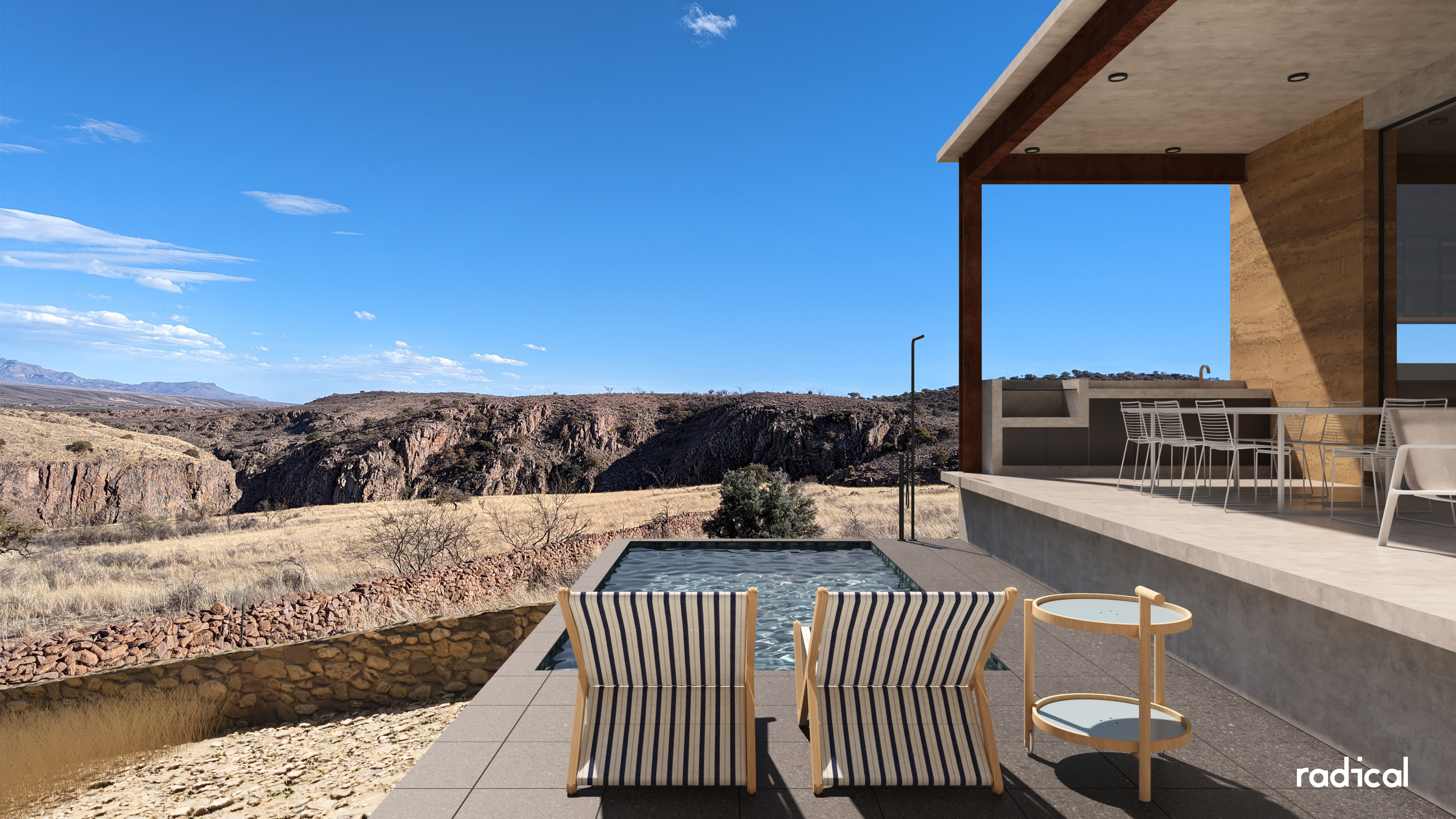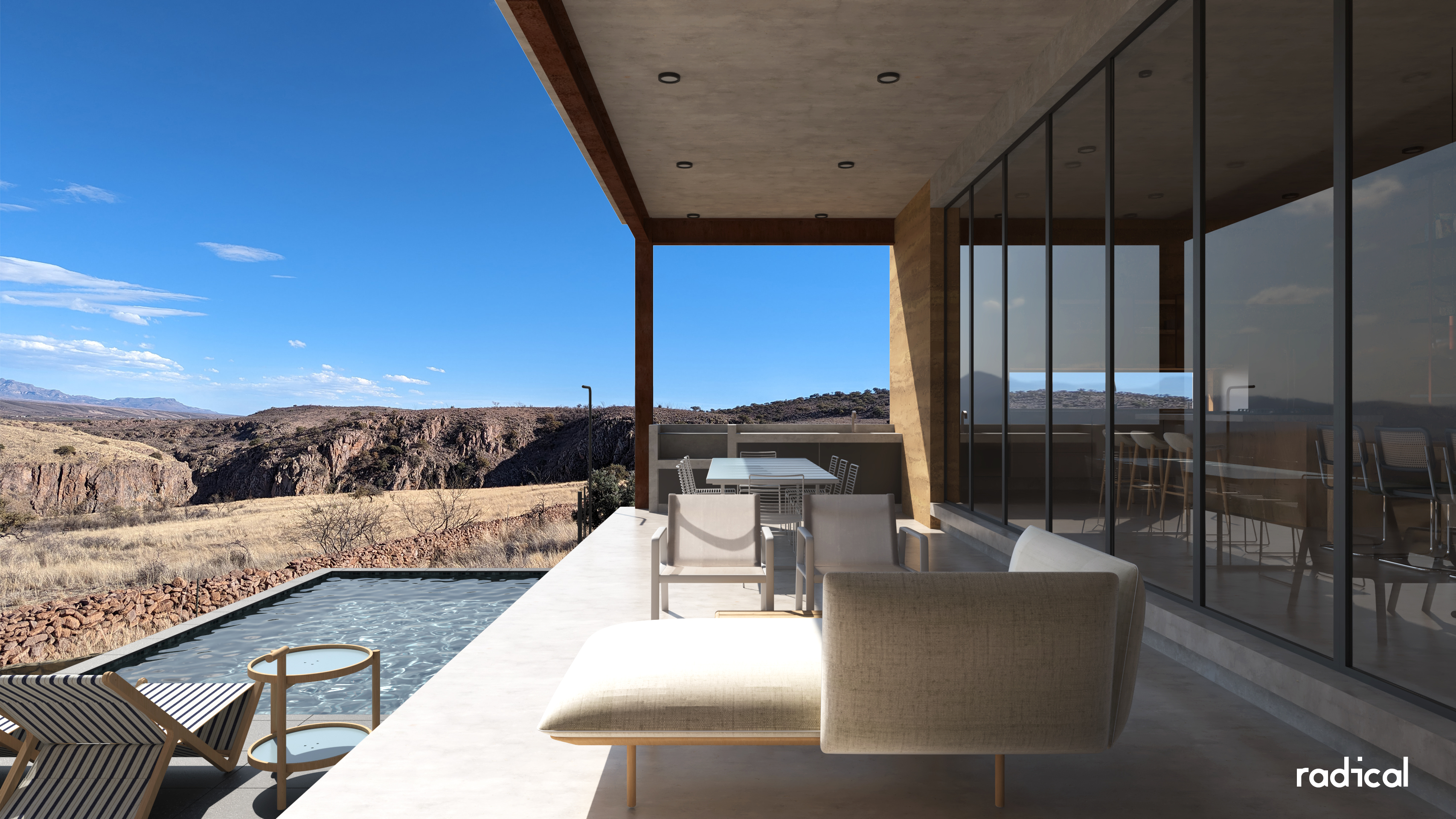 Casa Dertha propone ser un espacio de relajación y contemplación, con diferentes recorridos y vistas enmarcadas, que nos hacen desconectarnos de la ciudad y reconectar con el desierto tan emblemático de Chihuahua.