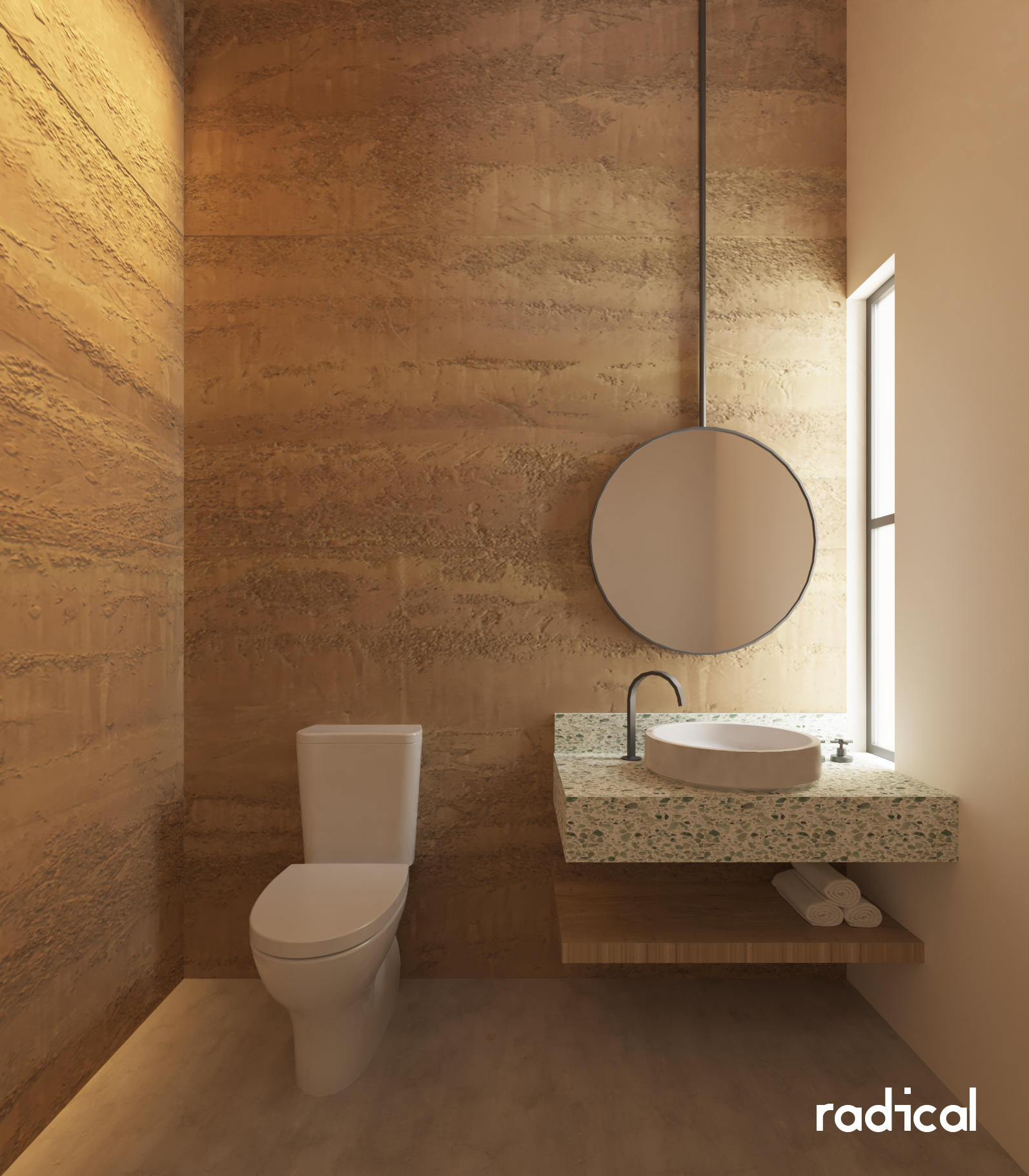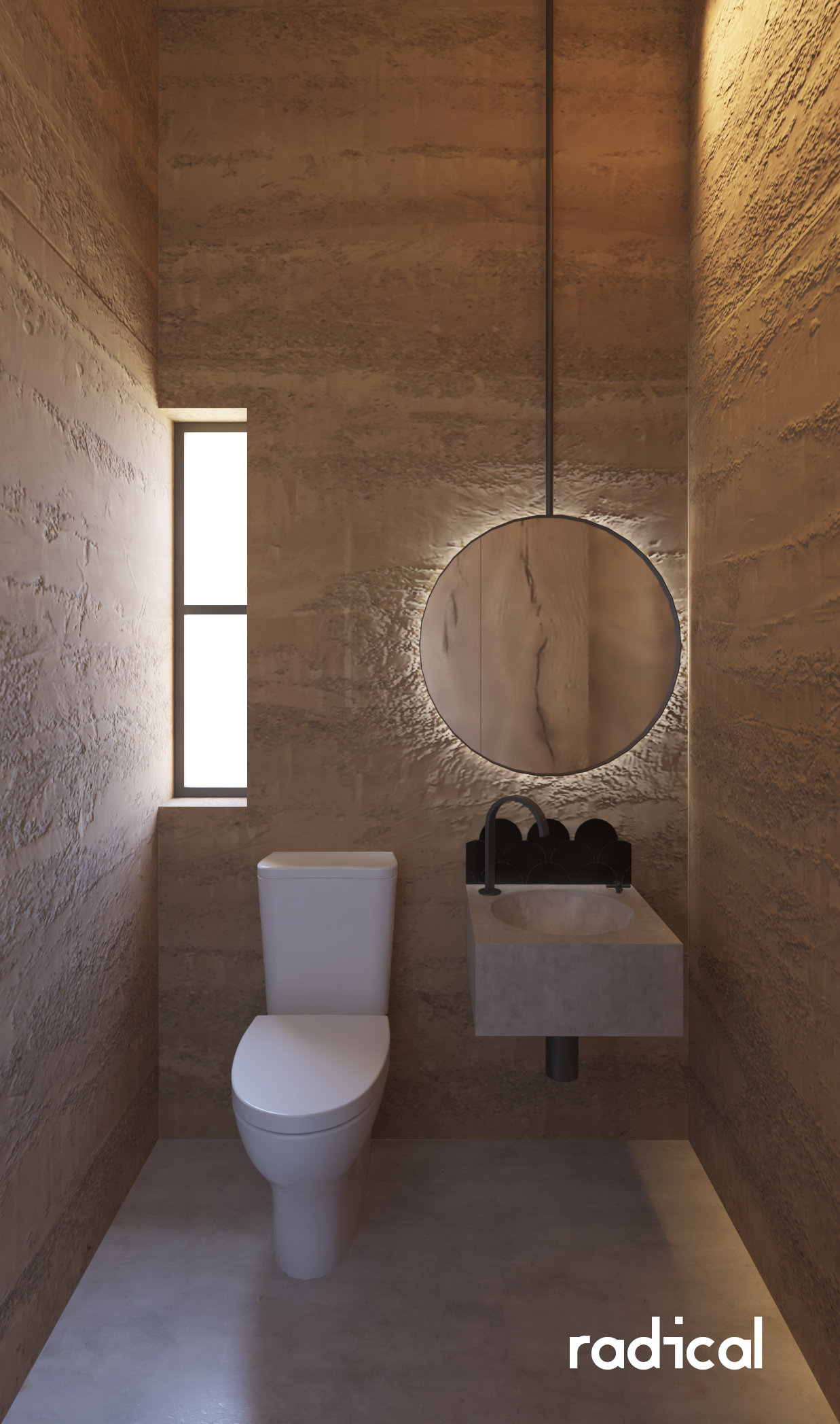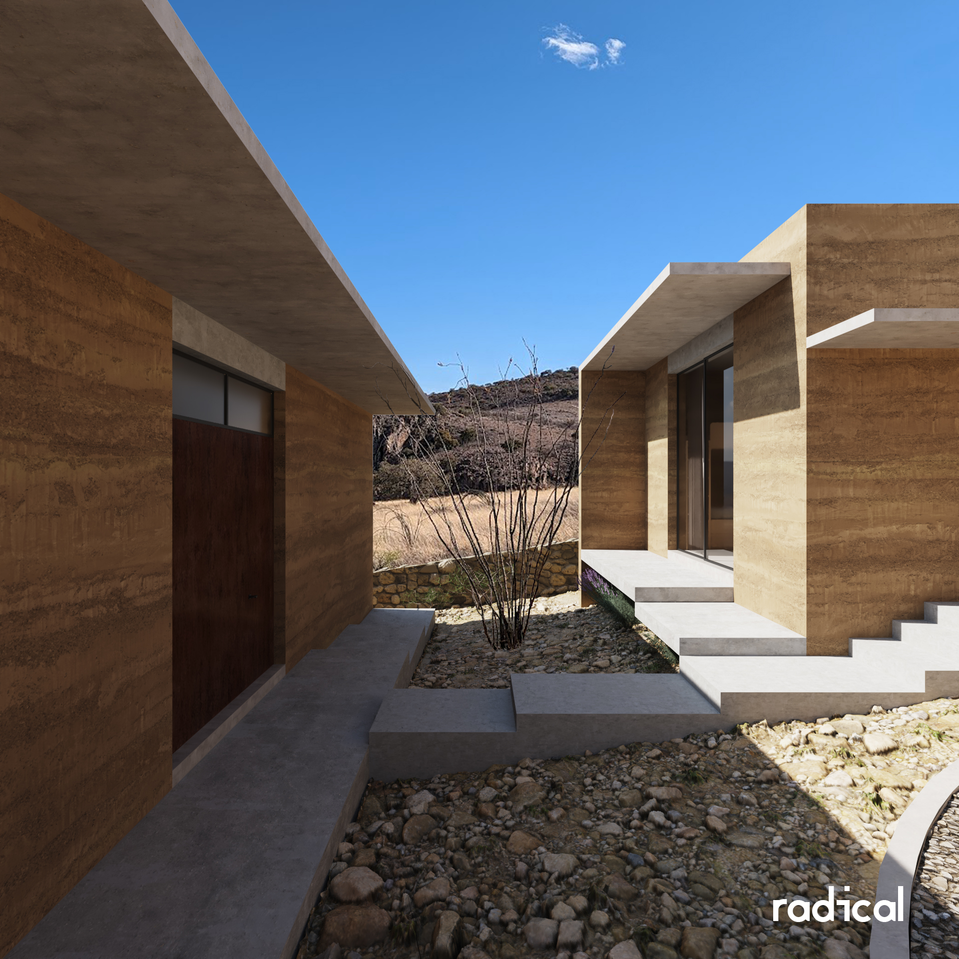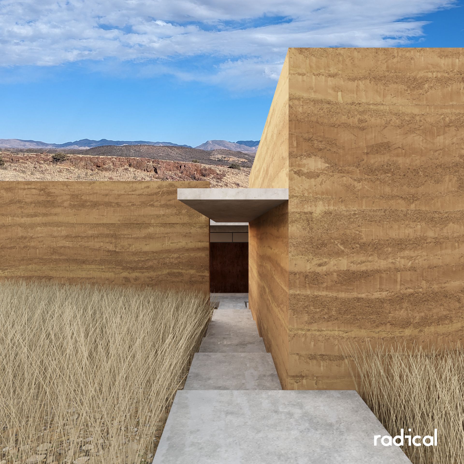 Proponemos como material principal y aparente el tapial, ya que éste aparte de mimetizarse tan bien con el entorno, aporta propiedades térmicas las cuales son de mucha importancia para climas extremos como los que tenemos en el estado. Así mismo proponemos materiales aparentes como el concreto, diferentes aceros y algunos detalles en madera.