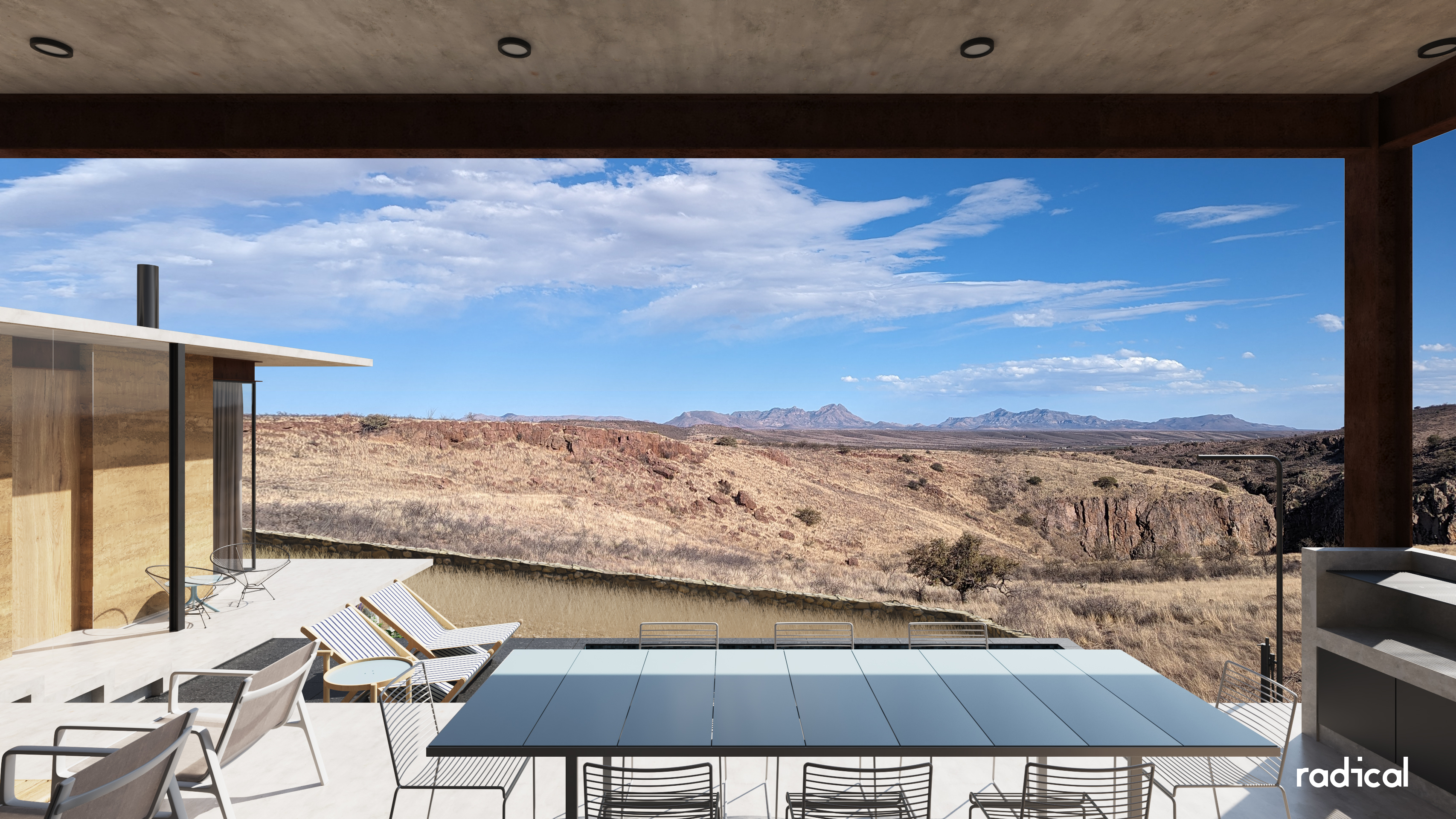 Esta casa de campo, la diseñamos para una clienta muy especial a quien le encanta el desierto de Chihuahua, sus vistas y vegetación. Casa Dertha está diseñada con formas minimalistas, desniveles y diferentes remates visuales, en donde buscamos que la vista fuera la principal protagonista.