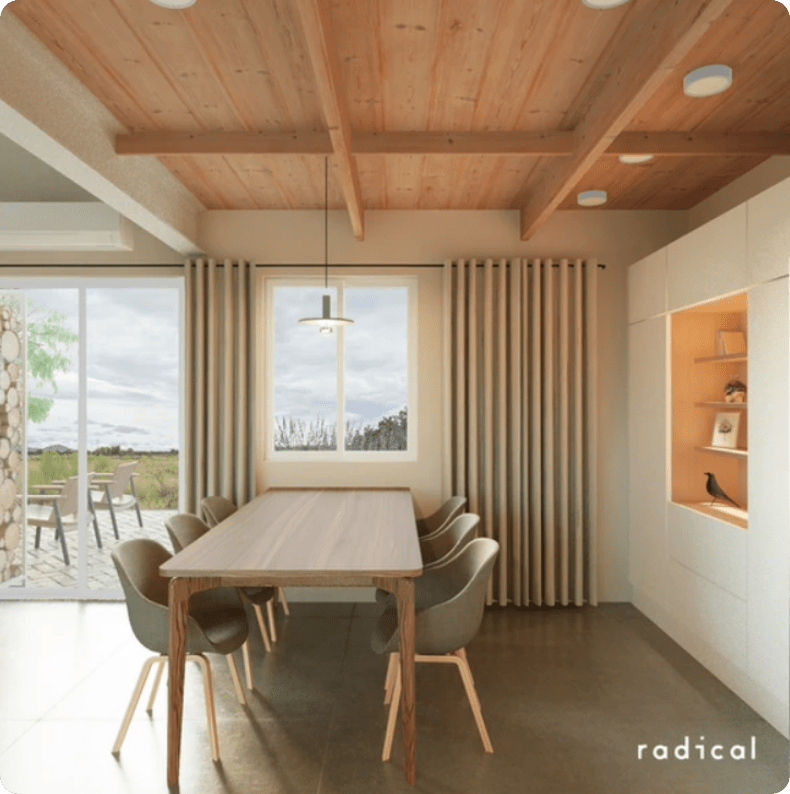 Diseño arquitectónico y de interiorismo para casa de campo.